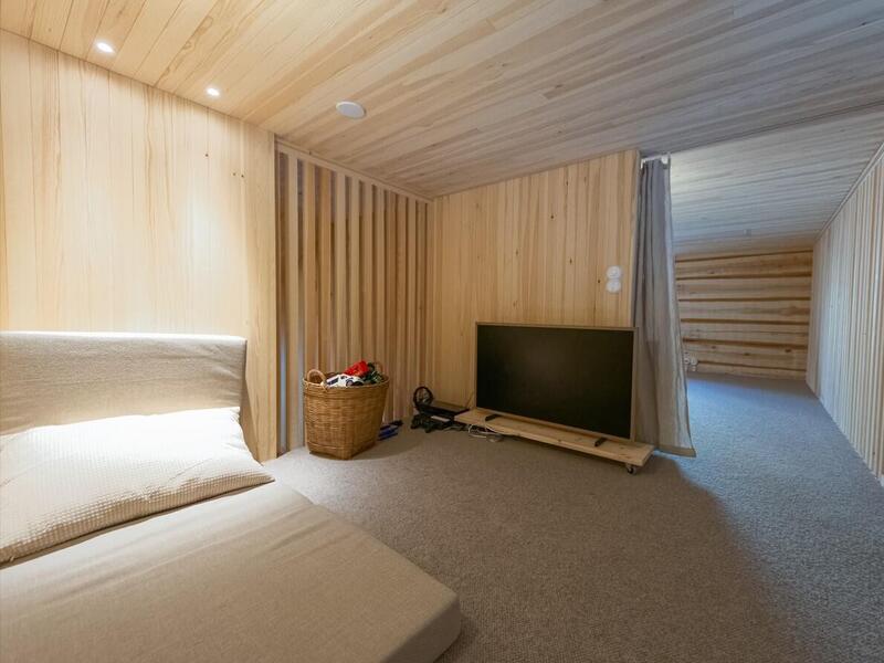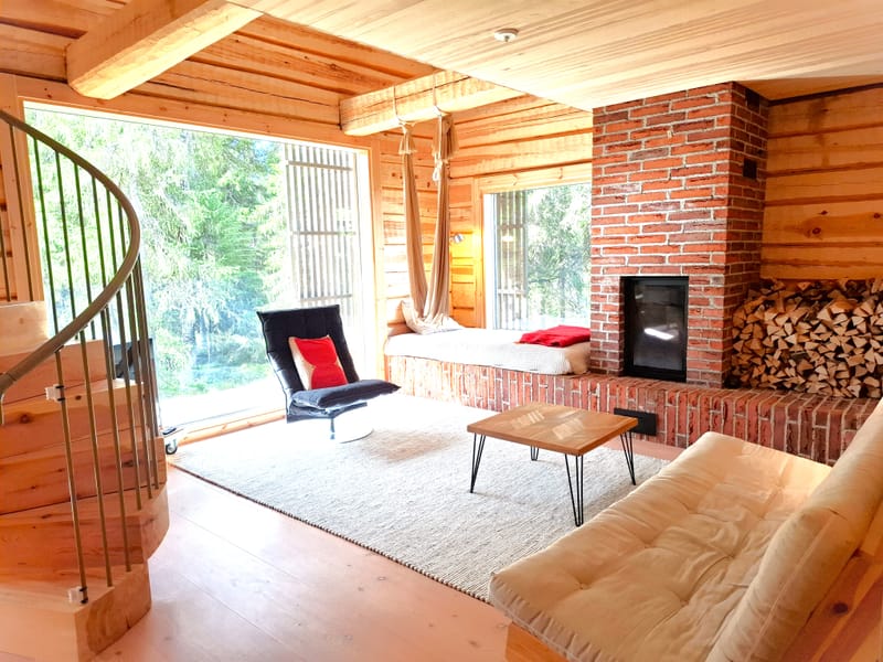 Saunan jälkeen takkaan syttyy tuli ja lomailijat kokoontuvat yhteiseen illanviettoon olohuoneeseen. Ikkunapenkiltä katsellessa voi revontuletkin vilahtaa, jos kohdalle sattuvat. Kaunis kansallispuisto aukeaa isoista ikkunoista.